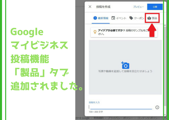 またまた、Google ビジネス プロフィール(旧:Googleマイビジネス)の投稿機能がリニューアルされました。お気づきですか??そうです!投稿タブに『製品』が追加され... -