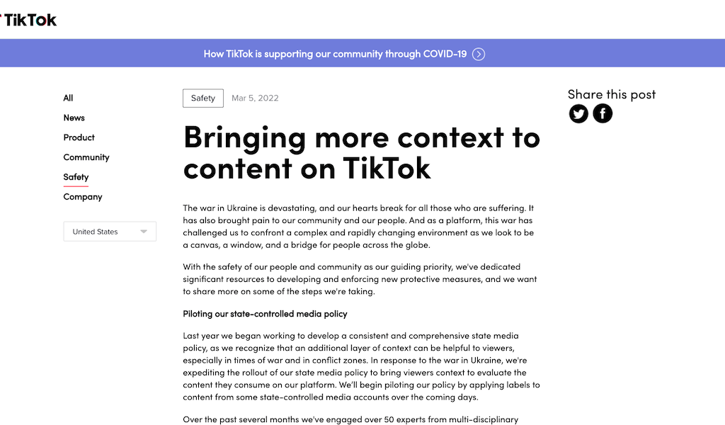 TikTok、ロシアでの動画投稿・ライブ配信を停止、フェイクニュース法の執行を懸念2022年3月6日(現地時間)、TikTokはロシアでの動画投稿・ライブ配信の機能を停止することを発表しました。ロシアで新たに定められる「フェイクニュース法」の執行を懸念...