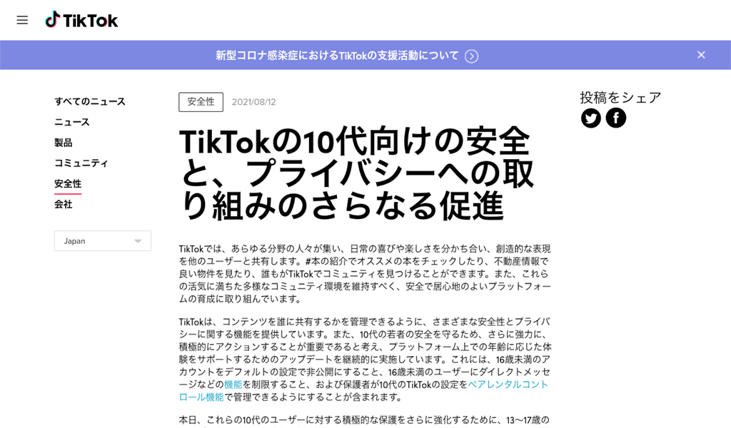 2021年8月12日、TikTokが未成年ユーザーの安全とプライバシーを保護するため、13〜17歳のアカウントに新しく制限を設けることを発表しました。これまでもTikTokは16歳未... -