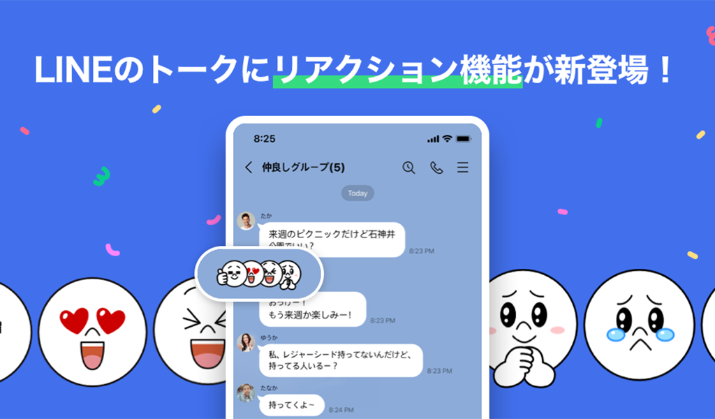 LINE、トークへ直接反応できる「リアクション機能」の提供開始